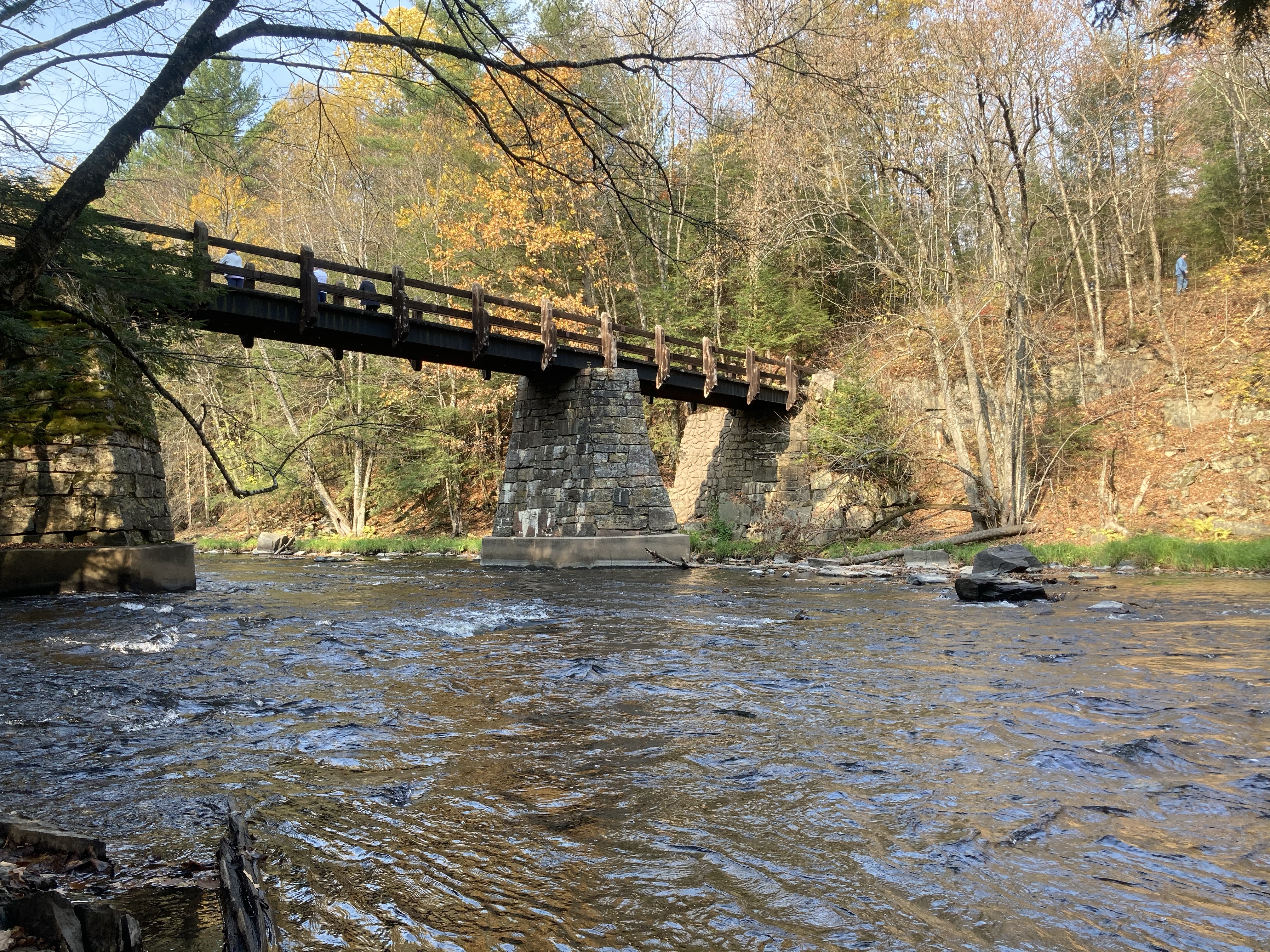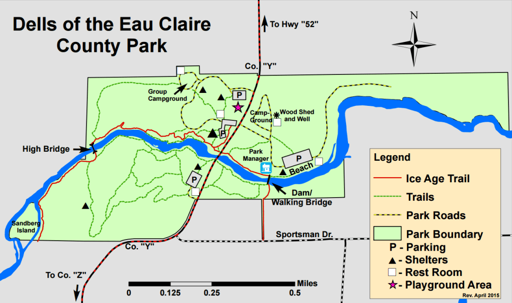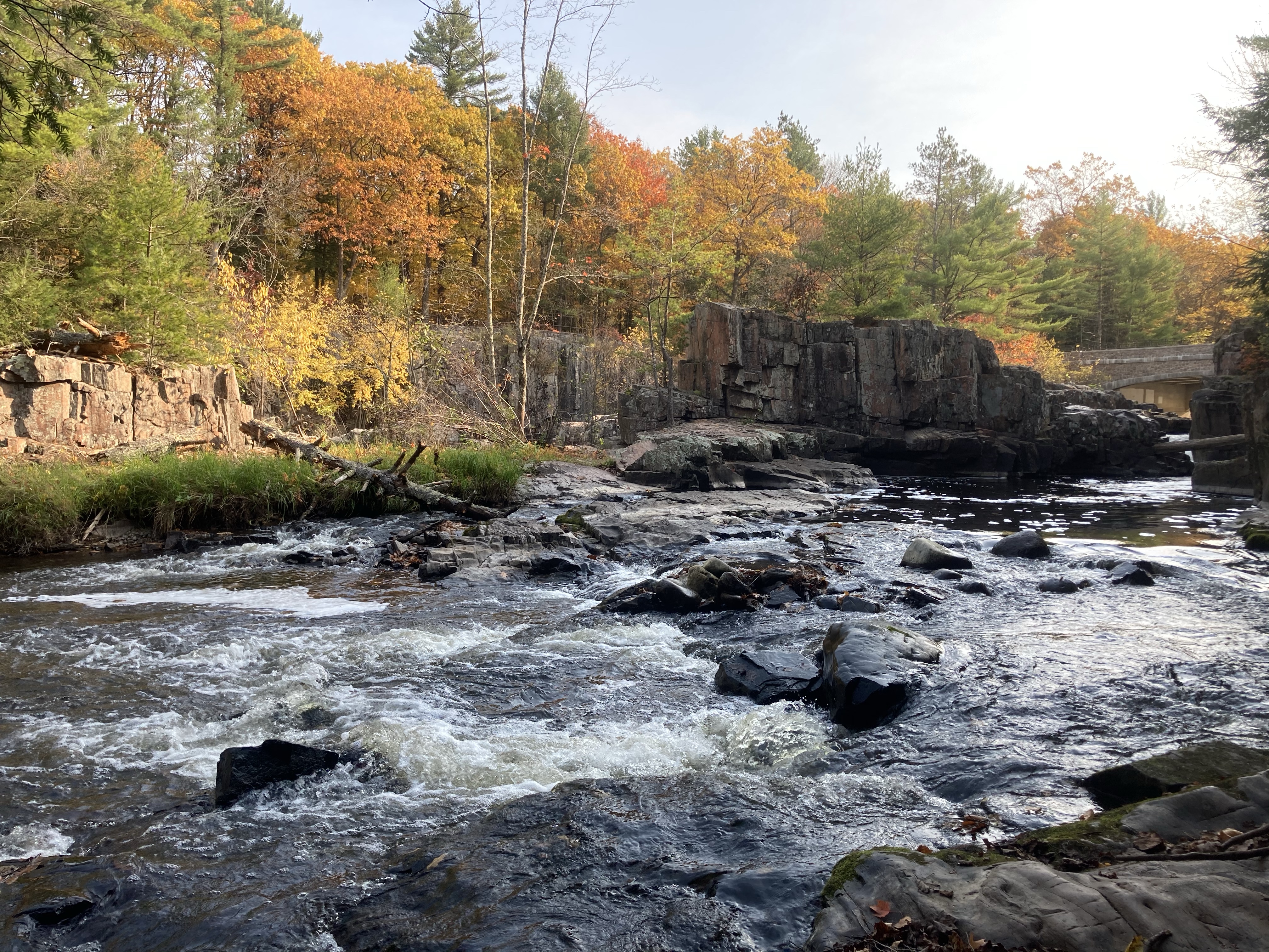 From either of the parking lots right off of County Highway Y, it’s a short walk to the network of trails that line the riverbank on both sides of the Eau Claire River. There are about five miles’ worth of trails to be explored within the county park, and so you can see the whole show in an hour or two.