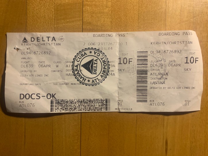 When you get to the international gate for Cuba in Atlanta, all you have to do is show them your Passport and they’ll print up a Cuban Visa for you right there on the spot ($50). If you were foolish enough to buy one of the Cuban Visas online from a third party vendor for $100 (which is what I did) the ticket agent would just look at you and shake their head. (Rookie move I guess, but hey – I’m headed to Havana so who really cares what the ticket agent thinks…) I’ve never attempted to travel via another airport to Cuba, so I highly recommend going through Atlanta because clearly, they have the routine down pat…