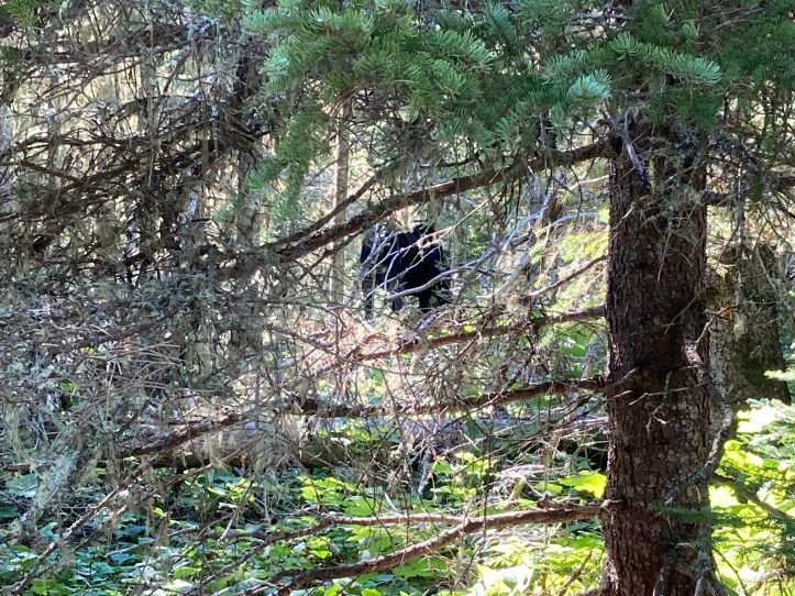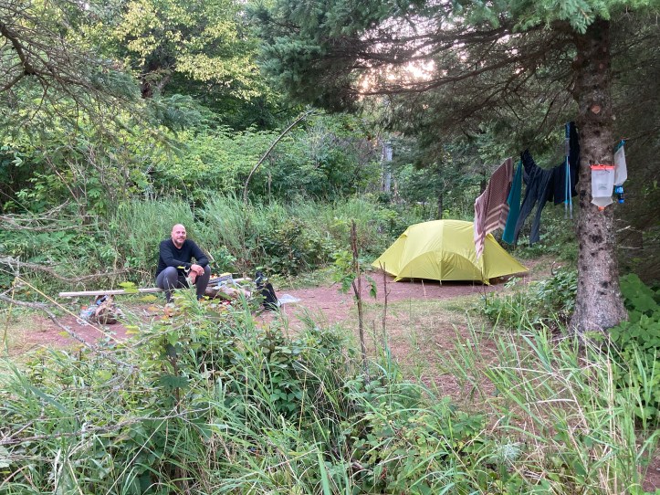 We moved to a different cabin for the second night, and from then on started picking campsites based partly on “Is there a big moose impression in the grass in camp” in an attempt to avoid a repeat of the night before. Cognitively we knew that we were safe in the shelter with the moose snorting and stomping right outside, but holy mother of moose it just sounded so BIG.