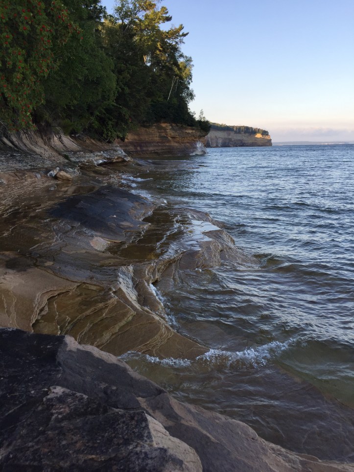 On this second short section, I hiked only as far as Miners Castle. It’s fairly easy to do a 42-mile end-to-end hike of the lakeshore trail, either by dropping a car off at one end and driving to the other to start, if you’re hiking in a group with more than one vehicle; or else by using a local shuttle. Note that there’s no cell service in the park (in fact, I had almost no cell service throughout the entire U.P. with Verizon), so don’t miss your shuttle!