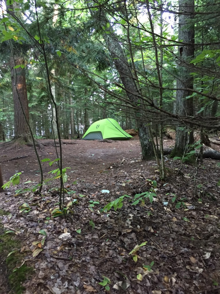 I went east first, headed toward my first night’s site at The Coves. I had printed out this map of the backcountry campsites and trails, which was all I needed for navigation. The trails are well-maintained and get a lot of use during the summer and fall, and who needs a compass when you can just listen for the crashing waves of the lake if you need to find north.