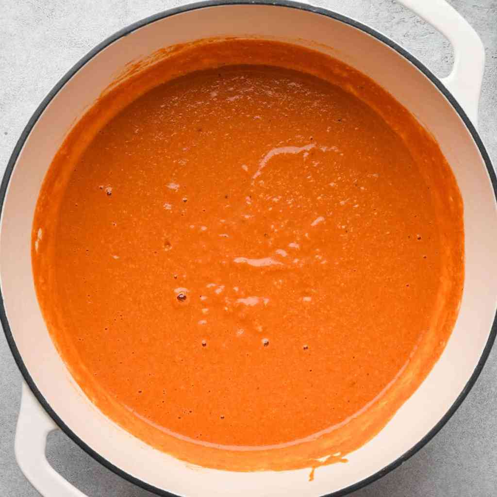- Once the sauce is ready, use an immersion blender to make it smooth and creamy.